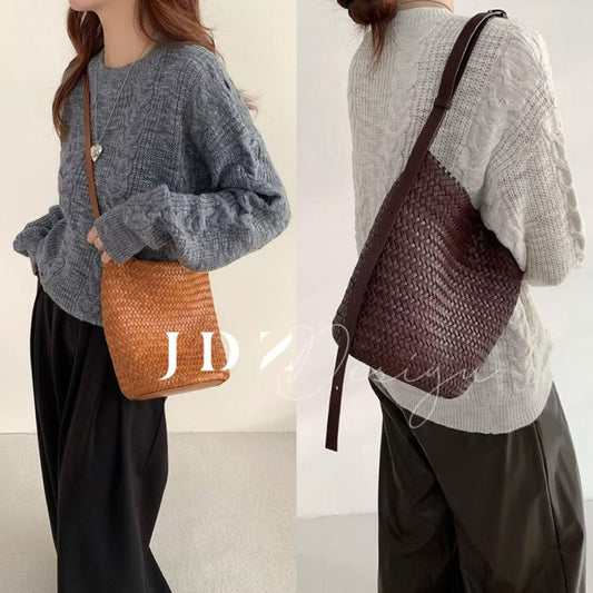 Ella - French Retro Woven Cowhide Leather Bucket Shoulder BagRegular price $141.99 USDRegular priceUnit price per$189.99 USDSale price $141.99 USDSale