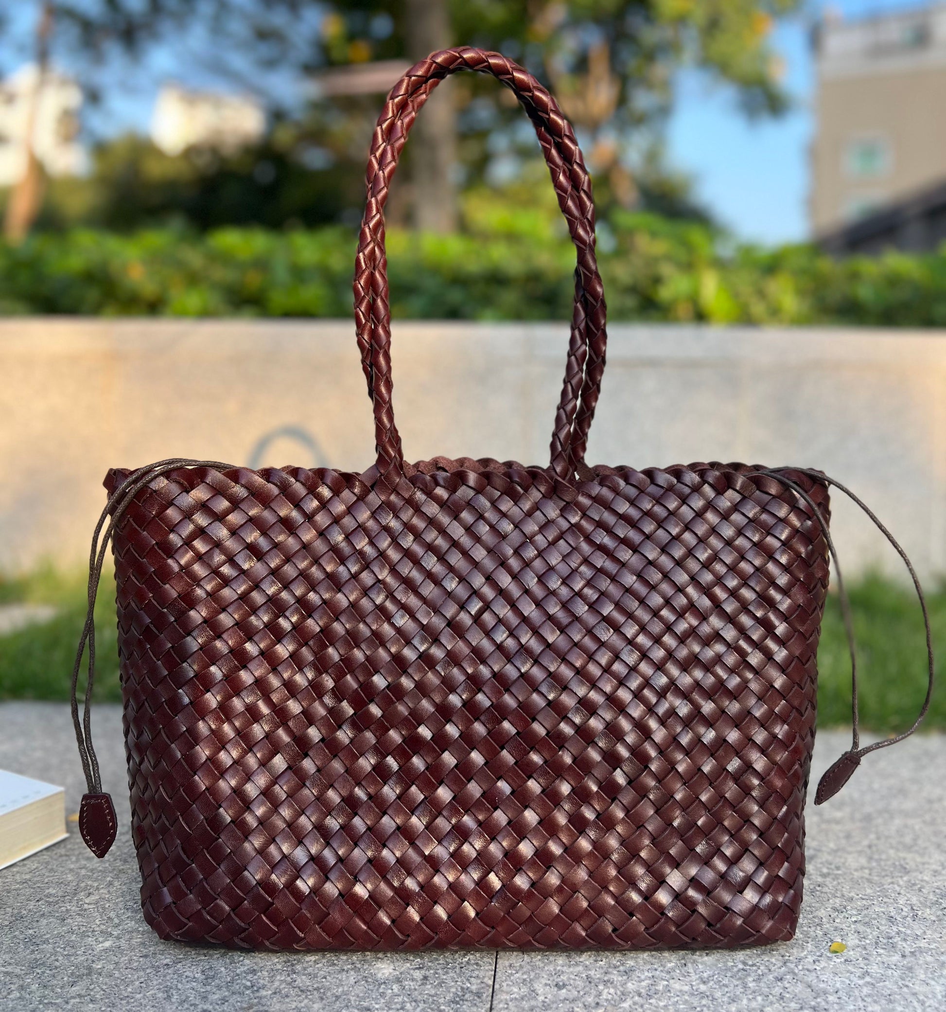 Eva - Retro Handmade Genuine Cowhide Woven Leather Tote Bag - Spacious Design