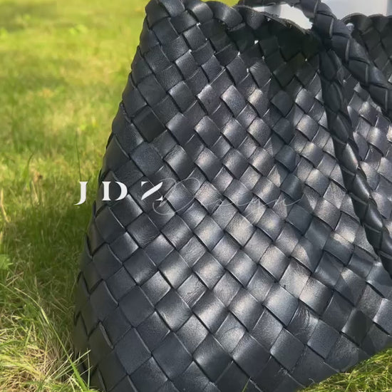 Mila - Retro Handwoven Genuine Cowhide Leather Tote Bag with Long Handle