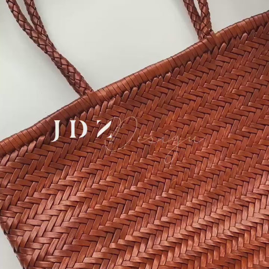 Olivia - Genuine Leather Woven Tote Bag, Large & Stylish for Shopping, Beach & Casual Use